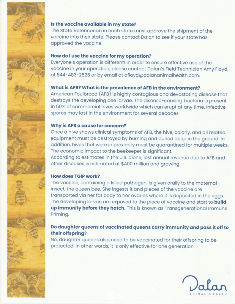 Dalan Vaccination for American Foulbrood Copyright © 2026 Stanwood Camano Beekeepers Association Back to Home Page