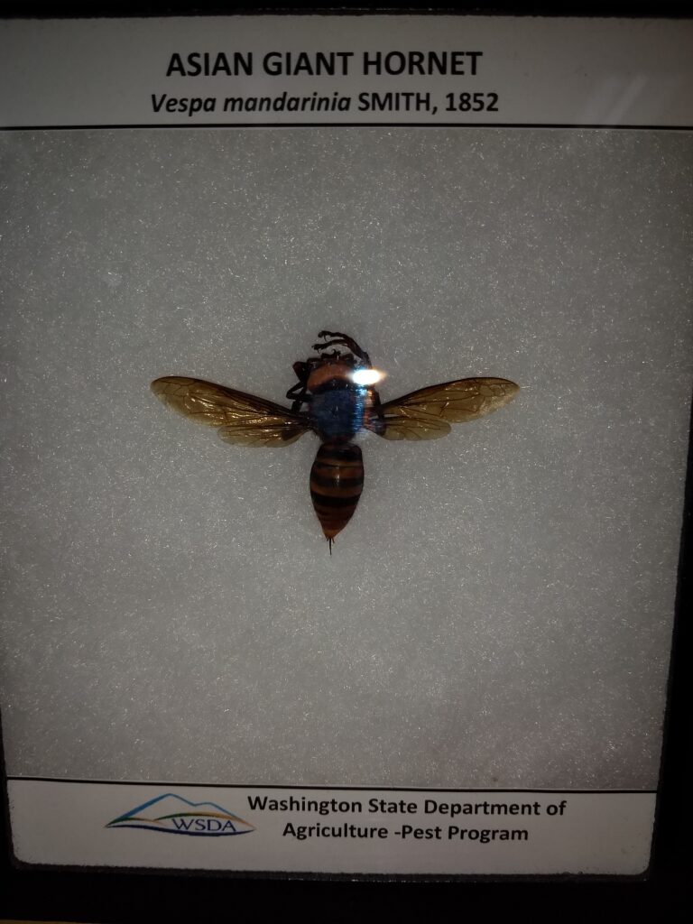 This hornet was found for the first time in British Columbia, Canada and in the northwest corner of Washington State in the Fall of 2019. It poses a significant threat to the honey bee. “It is the world’s largest species of hornet…(and) is well adapted to conditions in the Pacific Northwest.” A group (15 – 30) of NGH can completely overrun a strong colony (30,000 – 50,000) of honey bees within a few hours. Because of the potential damage this insect can cause a significant effort is under way to trap and eradicate them in the area in which they were discovered. Since no further sightings have been reported, we are hopeful that this pest has been eradicated although the situation is being carefully monitored.